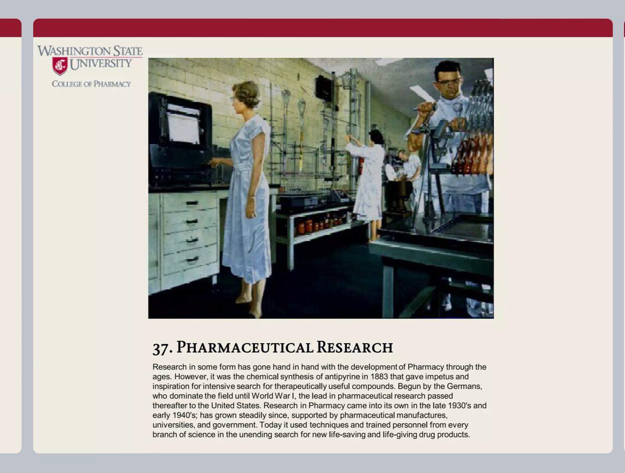 Eczacılığın gelişimiyle birlikte araştırma her zaman birlikte ilerlemiştir. Ancak, antipirinin kimyasal sentezi olan 1883 yılı, terapötik olarak kullanışlı bileşiklerin yoğun araştırılması için ivme ve ilham sağlamıştır. Almanlar tarafından başlatılan ve Birinci Dünya Savaşı’na kadar alanda hakimiyetlerini sürdüren ilaç araştırmaları daha sonra Amerika Birleşik Devletleri’ne geçti. Eczacılık alanındaki araştırma 1930’ların sonları ve 1940’ların başlarında kendi bünyesine kavuştu; o zamandan beri ilaç üreticileri, üniversiteler ve hükümet tarafından desteklenerek sürekli olarak büyümüştür. Bugün ise yeni hayat kurtaran ve yaşam veren ilaç ürünlerinin sürekli arayışında her bilim dalından teknikler ve eğitimli personel kullanılmaktadır.
